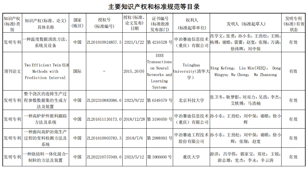 主要完成单位:中冶赛迪信息技术(重庆)有限公司、清华大学、北京科技大学、广东中南钢铁股份有限公司、南京钢铁股份有限公司、重庆大学、中冶赛迪工程技术股份有限公司、山东钢铁集团永锋临港有限公司